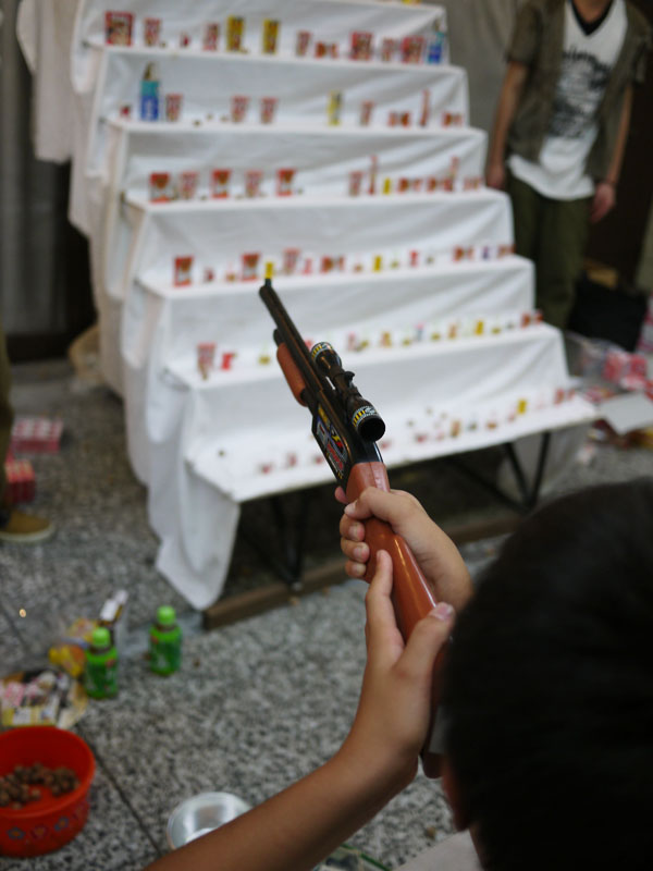夜店が始まるのは6時からなので、早めに行けば人が少ないかと思ったのに、この日は多いです。で、うちの子のお目当ては、射的です。物をもらうためではなく、純粋に射撃が目的のようです。何か食べるものを買って帰ろうかと思っていたんですが、シュウさん(朱華園)がすいていたのでラーメンを食べることにしました。ここのスープは時刻によって味が変化します。私はやっぱり夕方の味が好きです。で、せっかくなのでビールも一緒に頂きましょう。そう言えば瓶ビール飲んだのっていつ以来かな?でもやっぱり食べるものは買って帰りたい気分になりますので、長江の豚まんを買って帰りましょう。塩豚まんがおすすめ。今回はそれに加えて、ショウガ豚まんを買ってみました。初めて食べましたが、ショウガもなかなか美味しいですね。で、やっぱりコマサには寄りますか。相変わらず長期在庫の魅力的なおもちゃが並んでいます。スイーツも買って行きましょう。福福饅頭。大判焼きとか太鼓饅頭とか夫婦饅頭とか言われるあれです。店頭で動いている機械を見ているだけでも楽しいですね。持って帰らずに焼きたてを食べればよかった。松愛堂さんにも顔を出して、はっさく大福を買いましょうか。でもコレも美味しそう。地元、瀬戸田のレモンのマドレーヌだそうです。じゃぁコレも一つ。やっぱ夜店は楽しい。今シーズン中にもう一回行きたですね。