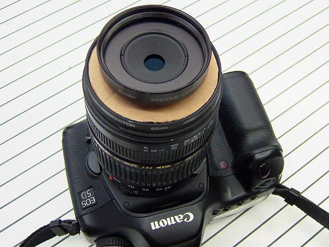ピンホールレンズとマウントアダプターを外して間にダンボールで作った筒を入れて撮影してみましょう。