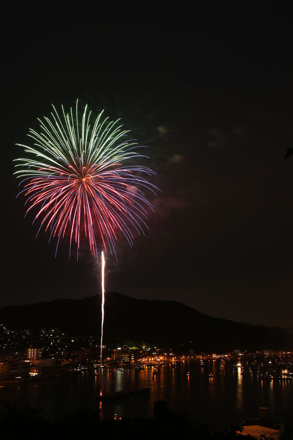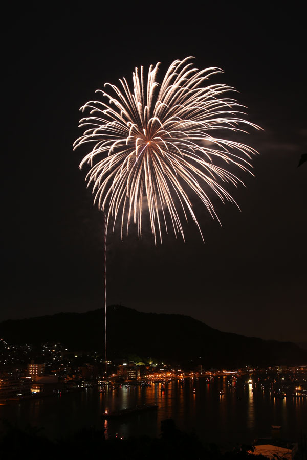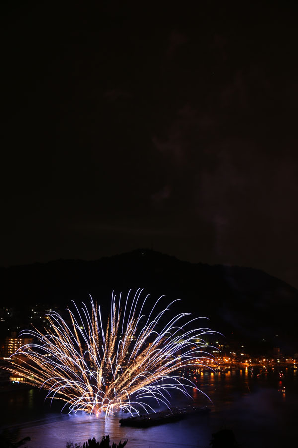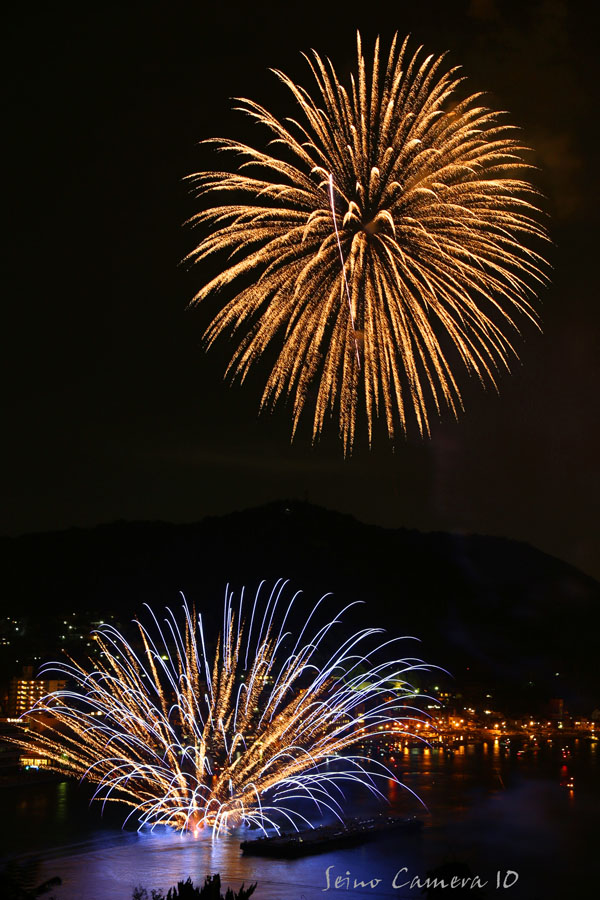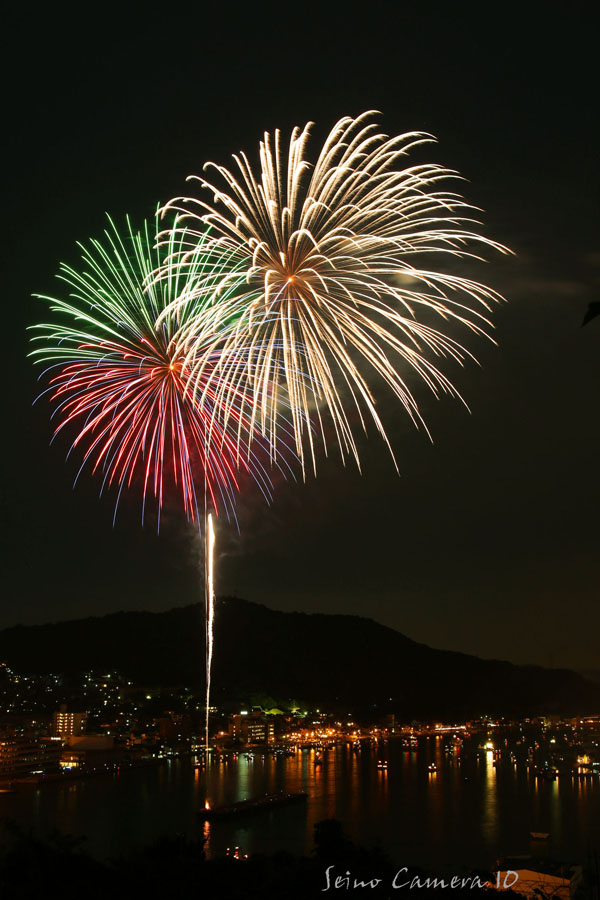 描写の良さを考えて、Flektogon35mmで行こうかと思ってセッティングしてたんですが、ちょっと画角が面白く無いので、やっぱズームで行きましょう。と言ってもあんまりいズームは持ってきていませんでしたので、タムロンの28-300mmでいきます。そして、去年は一人で撮影していたんですが、今年はうちの子と友人夫婦の参加で、みんなそれぞれが撮影します。やっぱみんなで撮影するのは楽しいですね。しかし準備段階で既にビール片手です。撮影とビールとどっちがメインなのと聞かれれば、そりゃあもちろんビールでしょう。私ももちろんビール先行です。そんなわけですから、今回の撮影もまじめに取り組むはずも有りません。友人夫婦は、私と一緒に撮影するので、いろいろ教えて貰いたいと思っていたのでしょうが、結局ちゃんと教えることもなく、ビールとつまみを楽しんだのでした。しかし、まぁ、一応は三脚据えていましたので、シャッターさえ押せばいくらかの写真は撮れます。そんな中から使えそうなコマをピックアップして何枚か重ねてみましょう。まずはこれ、結構絞って撮りましたので、花火の線が細いです。でもそのおかげで品の良い感じに写ってますね。同じアングルで撮影したコマのうち、このコマを重ねてみましょう。重ねたコマは別レイヤーにして比較(明)にしましょうか。そしたら全体の色を整えて、はい、こんな感じでどうでしょう。今回の花火は全体的に撮りやすかった印象なんですが、上がった花火が同じような位置で開くことが多かったようで、レイヤーで重ねるとほぼ同じ所に花火が重なってしまって面白く無いのが多かったです。と、なれば、切り抜きますか。良い感じの水中花火が撮れたものの、空が寂しい。しかし同じアングルで撮ったものには、良い感じの花火が撮れていません。仕方がないので、他のコマから花火だけ切り出して重ねてみましょう。例えばこれ。切り抜いて重ねます。重ねたレイヤーは、比較(明)にして、位置を調整しましょう。コレならいいですね。この調子でいくつか作ってみようと思ったのですが、そこはやはり、ビール片手に撮影した影響が出てしまいます。コレ以外に人に見せられそうなのが有りません。でもやっぱり何人かで一緒に撮影を楽しむのはいいですね。