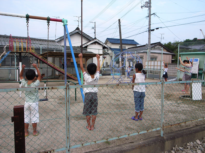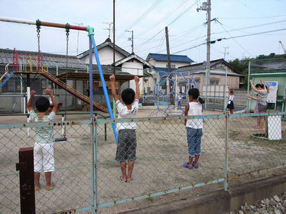とりあえず係なので、ちょっぴり早めに行った方がいいですね。 でもあんまり早く行っても、会場の公園は寂しい感じです。でもしばらくすると、ボチボチ集まってきます。今年もケンくんは体操に参加してますので、 一部の子ども達には人気のようですね。一昨年の体操では、まだまだ小さかったのですけどね。もちろんうちの子も成長していますが… では時間が来ましたよ。みんなでラジオ体操をしましょうか。そして体操が終わったら、 スタンプを押しますから並んで下さいね。