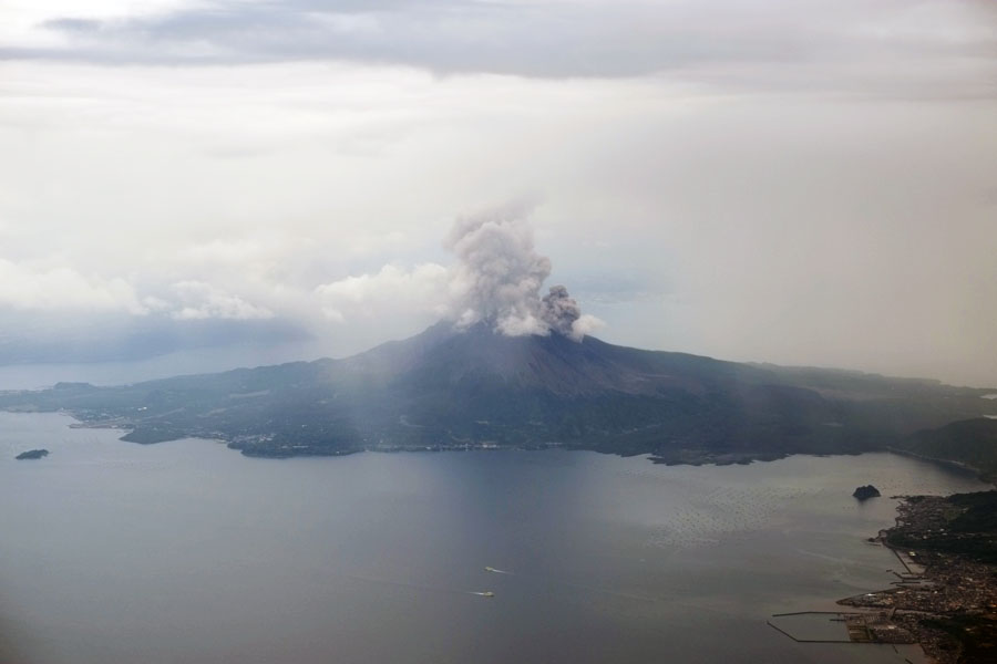沖縄でのお盆を過ごした後は、直接尾道に帰らずに鹿児島に寄って行きましょう。しかし鹿児島は、桜島の火山灰がひどい状態だとニュースで言ってましたね。もうおさまっているかと思ったんですが、飛行機から見えてきた桜島は、 黒い煙を上げていました。
