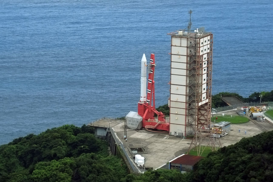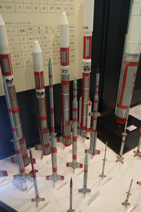 ところで今回鹿児島に向かった理由はと言いますと、なんとなく去年と同じようなパターンではあります。去年は夏休みに入ってすぐに種子島でロケットの打ち上げが予定されていましたが、交通手段はすべてソールドアウト。それでも種子島宇宙センターに行きたい気持ちが冷めなかったので、打ち上げとは関係ない日に種子島に行ったのでした。そして今回は種子島でなく、内之浦での打ち上げが行われるという話。しかも8月22日。これなら沖縄に帰省した帰りに行くのにちょうどいい日程です。交通手段もいくらでも有る。そういうことで今回鹿児島に行くことにしたのでした。ところが、ところがですよ、8月に入ってから打ち上げが27日に延期になってしまったんです。今さらそう言われてもという感じです。既に飛行機は予約済み。今から変更するとなると一旦全部キャンセルしてから取りなおさないといけない。しかし既に新たな予約は難しい状態。ですので当初の予定のまま飛行機を使うしか無いわけです。ということでの鹿児島入り。でもせっかく鹿児島に来ましたので、JAXAの内之浦宇宙観測所に行ってみたいですよね。鹿児島市内に移動して、大学のツレと会うことも出来ましたが、今回はそれは我慢して大隅半島に向かいましょう。幸いロケットの発射準備中でも施設の見学はできるそうですので。鹿児島空港からレンタカーを借りて2時間ほどで到着です。ではまずは、入口ゲート横にある宇宙科学資料センターに行きましょう。 ここには、これまで内之浦で研究されたり、打ち上げられたりしたロケットの資料がたくさんあります。本当にたくさんあります。 これは初期のロケット開発に使われたペンシルロケット。 発射台の模型とか、 エンジンもあります。 これは、M-3Sロケット。 しかしなんと言いましょうか、展示物が時代を感じさせる。種子島で見たものとは明らかに時代が違います。しかし面白い資料館ですね。ひと通り見たら、いよいよ施設内に入っていきます。 施設内には受付をして車でそのまま入れるんですね。車にはこんなバッジを貼るように指示があります。で、中に入ったのはいいのですが、実は施設の建物内部というのは見ることができません。もしロケットの発射準備がされてない時期であれば、発射場にも行けるようなのですが、今はイプシロンロケットの打ち上げ直前状態。本来なら22日に打ち上がるはずのものですので、当然今は発射場に行くことはできません。では何が楽しめるかといいますと、施設内の一番奥の、20mパラボラアンテナが有るところ。 ここに行けば、少し遠くではあるものの、発射台が見れるわけなんですね。 こんな感じで。(35mm換算で28mm)ではせっかくですのでズームアップして、更に拡大してみましょうか。 おお、発射直前のイプシロンロケットを見ることができましたよ。考えてみれば、打ち上げ当日では、もうこんな近くでイプシロンロケットを見ることはできませんので、ある意味お得かも。うん、今回ここに来てよかった。あとは何か見学できるのもがないかとキョロキョロしていますと、こんなものもありました。 「イトカワ」そうです。ハヤブサで有名になった小惑星イトカワの名前の由来になった、いやいや、日本のロケット開発の父、糸川英夫さんの銅像です。なんだか嬉しい。そしてその糸川さんの横には、 「おおすみ」ここ、内之浦から打ち上げられた日本初の人工衛星。これが有ったから今の日本の宇宙開発が有るんですね。記念碑ではあるものの、見れてよかった。ではでは、イプシロンロケットも最短距離で見ることが出来ましたので、今度は打ち上げの見学場にも行ってみましょうか。見学場は発射台から3kmほど離れたところ。 打ち上げ当日は抽選で当たった人だけが入れるこの場所ですが、今ならだれでも入れます。階段を登っていった先に、 ちょっとしたベンチが据え付けられていて、何人かは座って見れるような感じです。しかし注目すべきは奥の矢印の位置。この辺りから正面を見てみますと、 おお、さっき見た、イプシロンロケットが設置された発射台がしっかり見えますね。矢印の場所が特等席です。この画角で35mm換算約83mm。幸運にも打ち上げ当日ここから撮影できる方は画角の参考にして下さい。ではここでもせっかくですのでピクセル等倍まで拡大してみましょう。 さて、27日はどんな打ち上げの様子が見れるのか。当日現地に行けない私は、PCでライブ中継を見るとしましょうか。