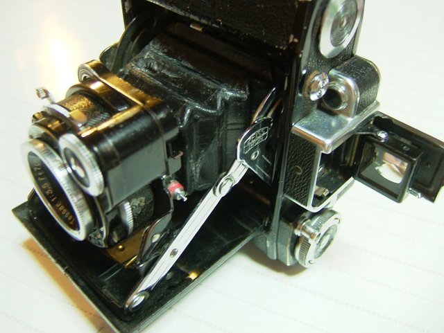 機種名は、イコンタ系の645で、スーパーセミイコンタです。IかIIだと思います。IIIじゃないですね。