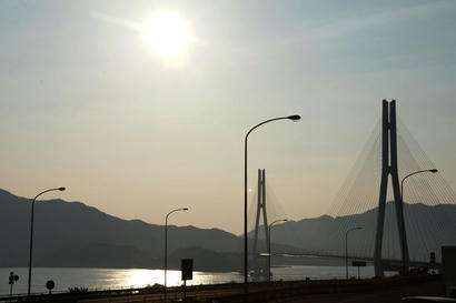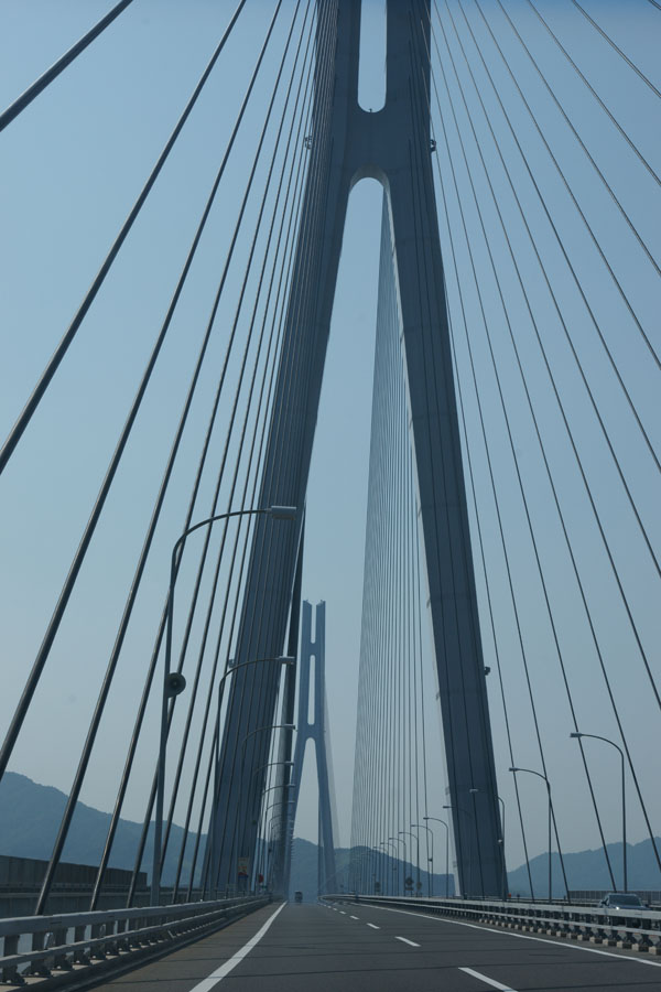 最初の写真は多々羅大橋を渡る車の中から。運転中の私には難しいショットです。 こちらは、ところミュージアム。 ところミュージアムから見える瀬戸内海。 多々羅大橋近くの道の駅の天井。 立石展望台。このアングルしか撮りようがないんですが、やっぱ広角の方がいいですね。 瀬戸田PAから見た多々羅大橋。そして、サンセットビーチでは、結構頑張って撮ったみたいです。 波打ち際をアップで狙うのもいいですね。今回うちの子が使ったのは、α900 + 28-70mm,F2.8でした。また行こうか。