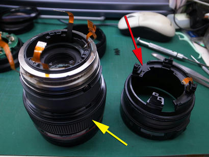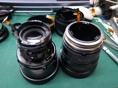 ということで、やっとマウント部と、レンズ後群を外しましたがまだまだバラさないといけなさそうです。