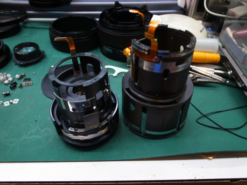 キヤノン28-70mm分解の続きです。バラしていってますが、まだズーミング関係の所までバラせていません。ここから先はどうすればいいのでしょうか。多分ここしか無いとは思うんですよ。 でもね、ここを外すと、