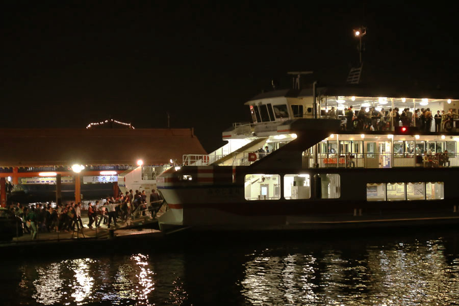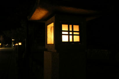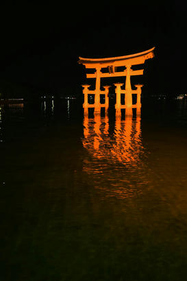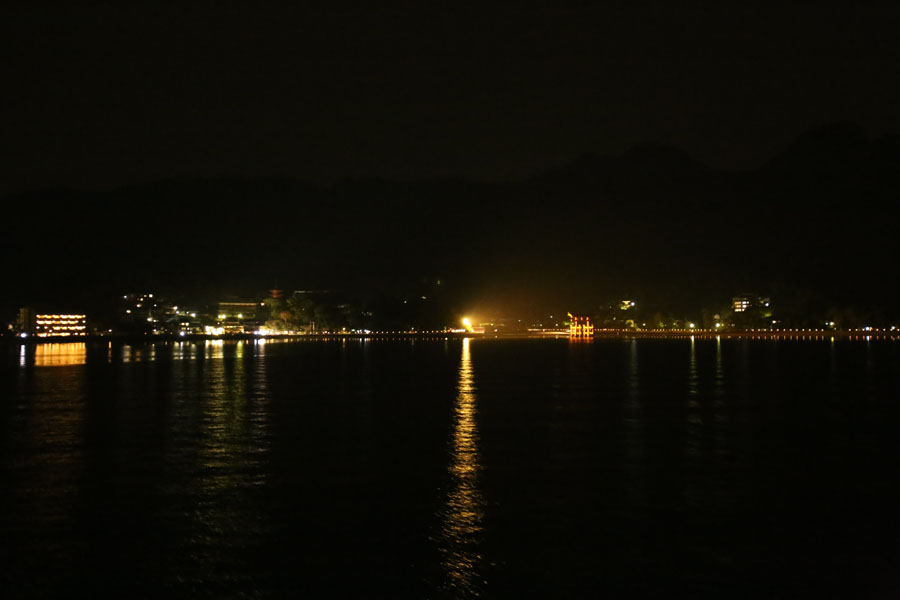 とちょっとしためぐり合わせで、宮島に行ってきました。しかも夜。私としても、夜に宮島へ行くなんて初めてです。でも商店街も閉まっていて、厳島神社も入れないでしょ? しかし、修学旅行生も夜の宮島へ。なんだか千と千尋の神隠しみたい。