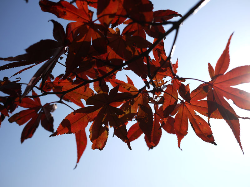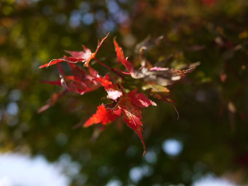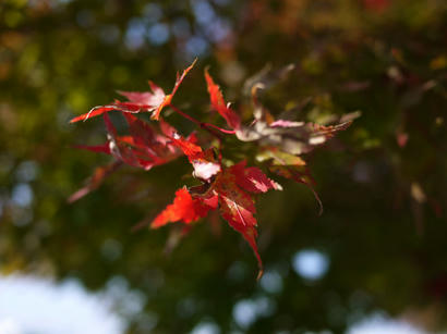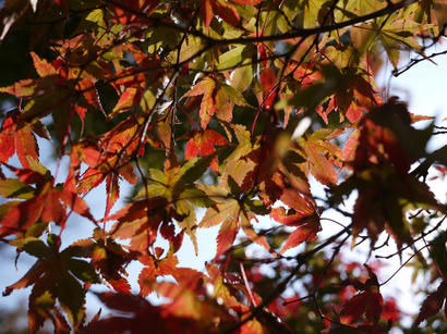 うちのまわりでは、まだ紅葉はあまり進んでいませんが、空港周辺は山の上なので紅葉が早いようですね。 まだ緑の残ったグラデーションも面白い。 木によってはもう真っ赤になっているものも有りますね。 光の当たった葉を裏から狙ってみたんですが、太陽が強めに入ってしまいましたか。 ほんの短時間でしたが、少し紅葉を楽しむことができました。どこかに撮影に行きたいですね。