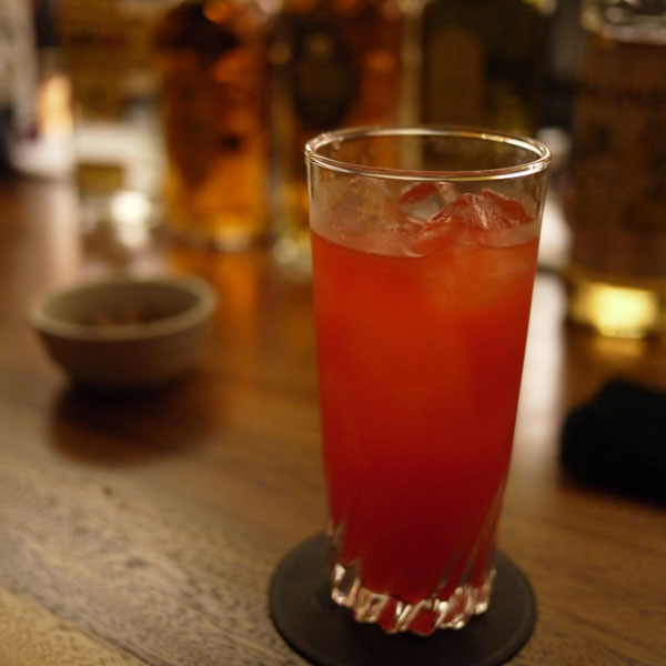 ここね、基本的にお好み焼き屋さんなんですが、宴会もやってくれます。今回の宴会も、鍋です。 ここでの宴会は基本的に鍋。結構美味しい。しかし今回は小鉢がいっぱい出てきてますね。 ナマコは美味しい。 これは、鶏肉とキュウリのゴマだれ?忘れた。 これはアサリの唐揚げ?うん、いける。しかし鍋の写真は有りません。と言うことで次のお店へ。 雰囲気ガラッと変わってBar加藤さんへ。ではまず最初はどうしましょうか。 ジンのロック行きましょう。さらっとゴードンで。次は軽めで、 カンパリソーダでも。 たまにはカクテルでも行きますか。何でしたっけ?ウオッカベースで赤いオレンジジューズでしたっけ?すいません忘れました。おとなりは、 ナニコレ?バーボン?ブランデー?では最後にやっぱグレーンがほしいかな。 と言うことで今回は、 VAT69。前から知ってる酒ですけど、知ってるだけで今まで飲んでなかったかも。これも美味しい。今回のお供は、パナソニックGF3 + 20mm,F1.7でした。しかし忘年会って、今年起こった嫌なことを忘れたいって意味?じゃなかったら、過ぎていく年を、忘れていくと比喩した表現?個人的には過去も忘れたくはないけれど…