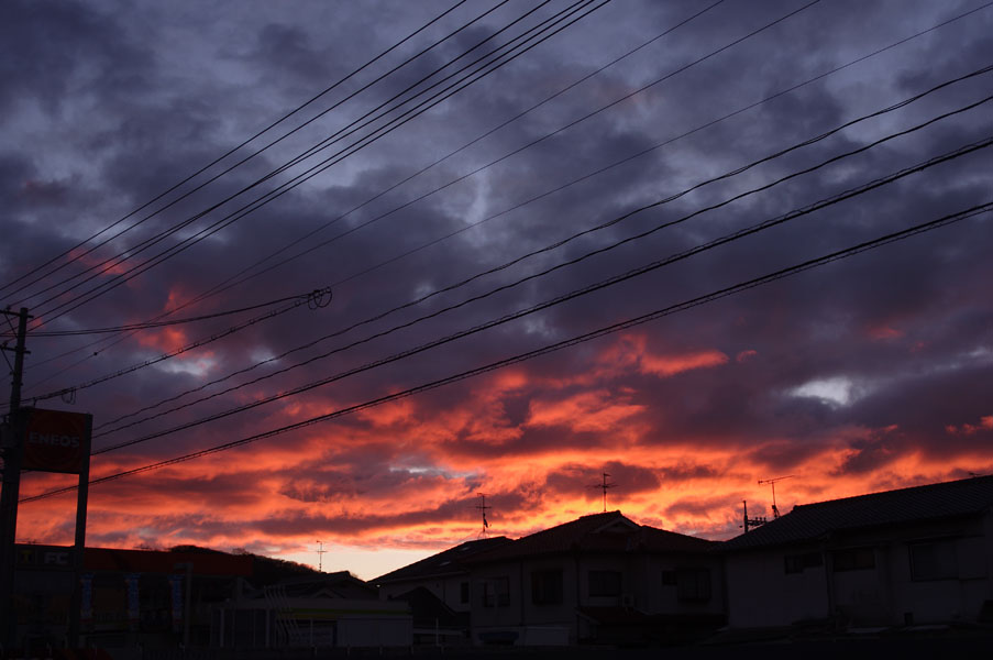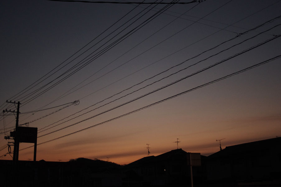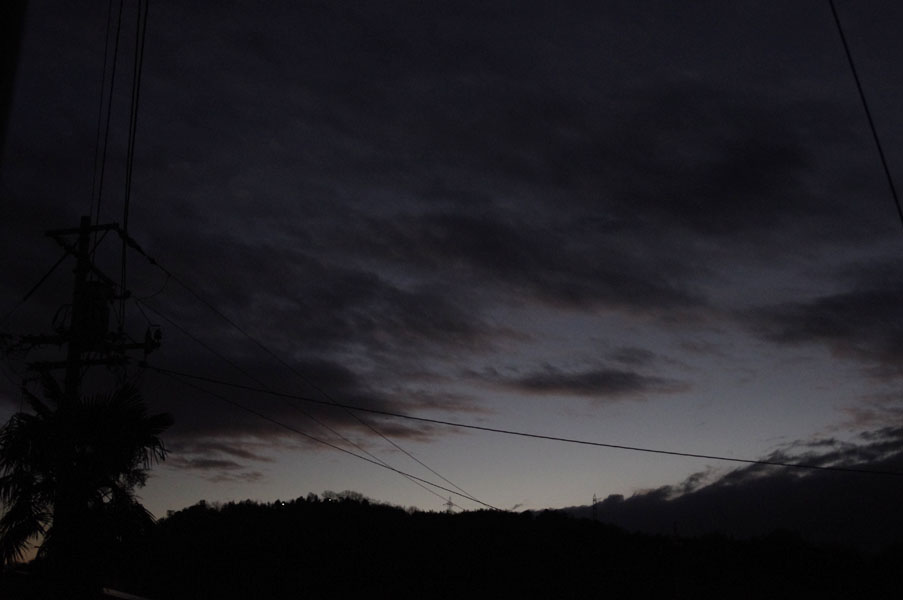しかし、このネタをやってしまうと、朝撮りとかぶってしまいますね。ま、いいか。最初の写真は雲が少ない朝ですが、朝日の影響をわずかに受けてダークオレンジとでも言いましょうか、何やら不思議な色になってます。 今度は雲の多い空。暗い朝ですが、雲の切れ目は明るくなっていますね。 今度は朝焼けの影響が強くでてますね。オレンジからダークブルーへのグラデーションが面白い。 今度は一転して、すごく青い朝でした。こんな色にもなるんですね。なんだか宇宙が見えているようにも感じます。 立ち込めた雲に朝焼けが映って鮮やかなオレンジになりました。これから朝もだんだん明るくなっていきますね。もうちょっとのあいだ空を楽しめるかも。今回の撮影機材は、PENTAX K-r + PENTAX-A 28mm,F2.8改です。