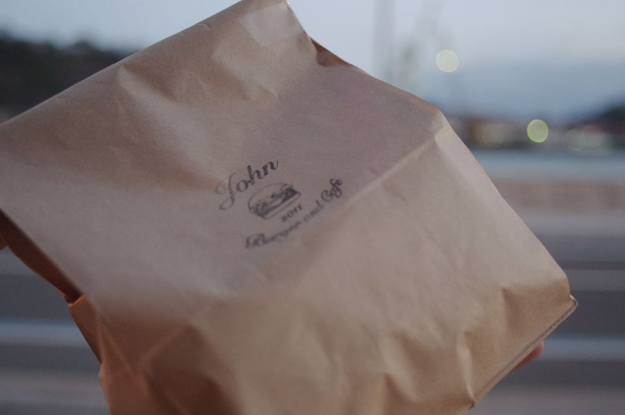 散歩のついでに買ったハンバーガーを、持って帰って食べましょう。