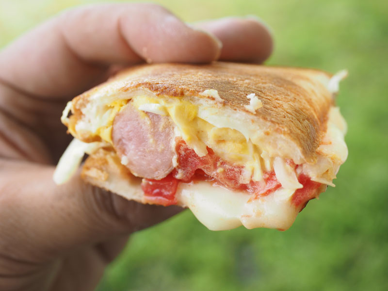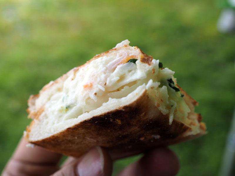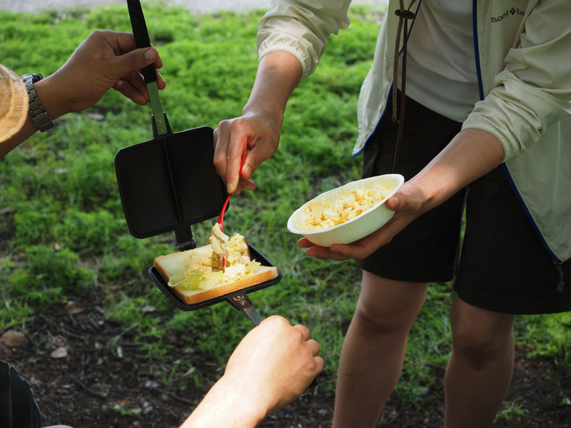 ビールが足りなくなったというので、 オリオンビールを手土産にして、しかし私は車で行きましたので、 オールフリー。で、着いたのがちょうど昼ごろでしたので、昼ごはんを一緒に頂きましょう。手土産あるからいいよね。今回彼らが用意していたのは、 ホットサンド。パンの間にすきな具材をはさんで焼きます。例えば、 チーズとソーセージとか、そして、 惣菜のポテトサラダもいいですね。これは? 卵とトマトとソーセージ。チーズも入ってる?うーん、美味しい。今日は晴れて日差しは強かったけど、木陰にいたので気持ちいい。 なんかゆっくりした午後を楽しませていただきました。 この場所、いいかも。ん?釣りは?今回お供したカメラは、オリンパス OM-D E-M1 + M.ZUIKO 12-40mm F2.8 PROでした。