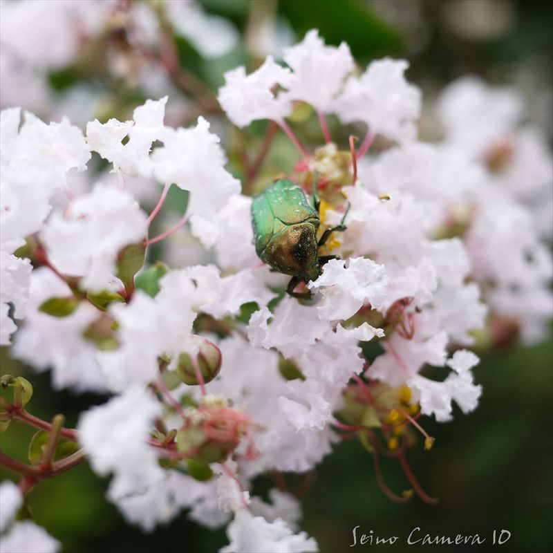 朝は咲いてたのに、もうしおれてしまったのかとちょと残念に思ったアサガオでしたが、 8月18日、晴れ、27℃。また咲いてる。 次の日も。次々新しいのが咲くのかな?と思ったりしてみたけど、よく考えたら、これはアサガオ。花が咲くのは朝ですね。当たり前か… 8月13日、曇り、24℃。シロテンハナムグリ?この白い点て、ランダムについてると思ってたんですが、どうやらどの個体でもほぼ同じ位置についているようなんです。他の写真と見比べて初めてわかりました。 最近は、緑のカーテンという名のもとに、ゴーヤーを植えていることもよくありますが、これはなんでしょうね。ゴーヤーではなさそうです。 8月28日、曇り、25℃。アリも蜜が好きなのかな?て言うか、蜜あるのか?と言った感じの8月の朝撮りでした。植物に勢いがあって楽しい月ですね。