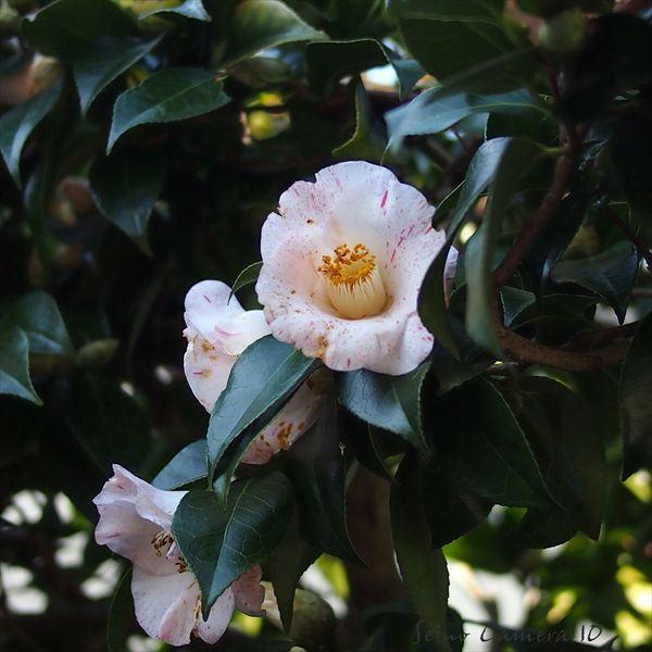 近所に白い椿が咲いてました。