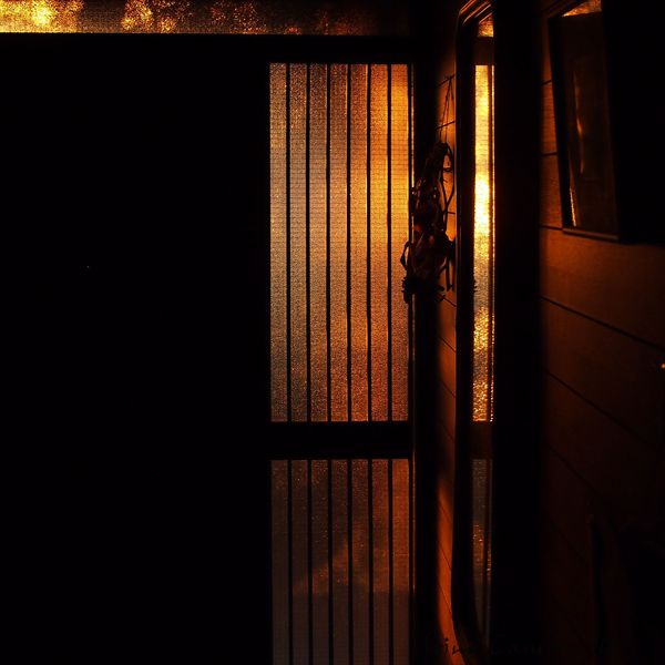 玄関が朝焼けに照らされて綺麗です。