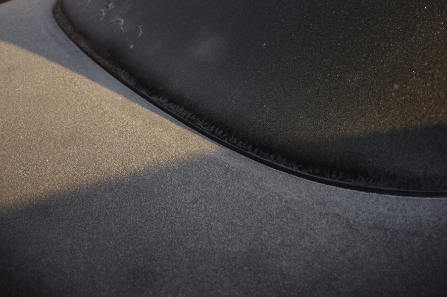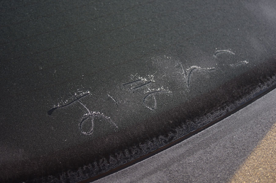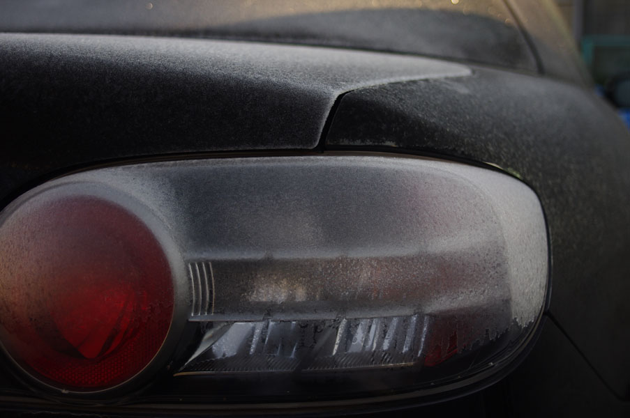 うちの子を早朝に送って行かなくなったこともあって、朝の早い時刻に車の様子を見ることがなくなったこともあるのでしょうが、今季はなかなか車の霜が見れなかったんです。