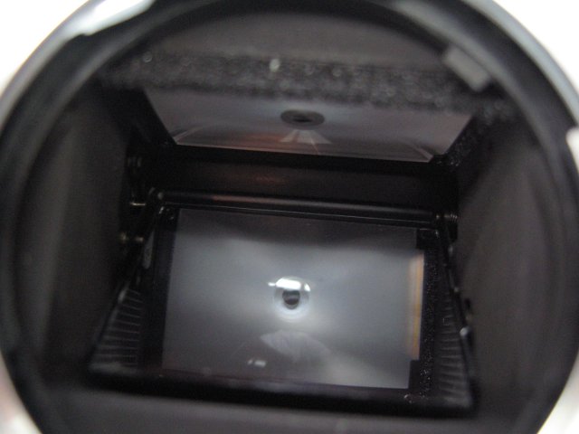 うーん。と思ってレンズを付けたまま、またシャッターを切ってしまったので、レンズを外そうとしたら、あらら、ミラーの端っこが欠けてしまった。