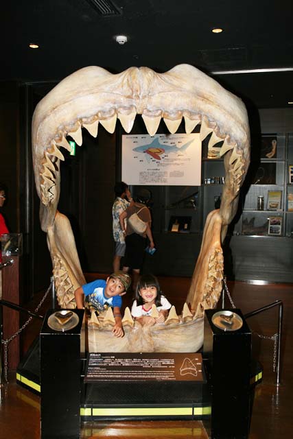 で、そこにメガロドンのあごの骨を復元した展示があって、そこに立って記念写真が撮れるようになってるんですよ。