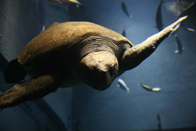 海遊館はでっかい水槽とジンベイザメで有名ですね。 大水槽を楽しむには、湾曲したところに密着して見ることです。 すると視界のほとんどが水の中と言う感じになりますので、臨場感と言うか、一体感と言うか、リアルな感じがします。 私が海遊館で好きな水槽は、 イワシの水槽です。 彼らは飽きることも無く、同じところをグルグルグルグル、永久に回り続けています。 同じところを回り続けていることを、彼らは気が付いているのでしょうか。 何だかかわいそうな気もしますが、見る側としてはその数に圧倒されます。 ウミガメがいい感じに撮れまた。 なんか、水の中と言う感じがしません。まるで宇宙空間を進むクリンゴン艦のような感じさえします。 海遊館の次は奈良へ移動。 法隆寺、東大寺と回って、京都に進んで宿泊です。 今回は夜のオプションとして京都タワーに行きました。 京都タワーからの夜景は初めてでしたが、京都には高いビルが無いので見通しがいいですね。でもちょっと地味かも。 上の写真は京都駅方面です。 こちらは反対方向。 東本願寺方面です。つまり北向き。やっぱこっちの方がもっと地味です。 こちらは東向きです。 ずっと遠くの山の方に、清水寺の塔が見えるんですが、この写真では分からないですね。 参考までに、こちらの写真は、東京タワーから見た夜景です。 こっちの方がもちろん派手ですが、京都の夜景も落ち着いた感じで、これはこれでいいかも知れません。