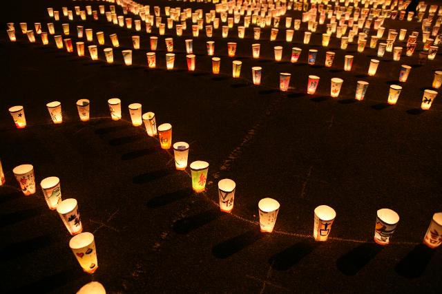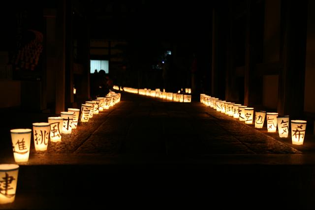 この祭りは尾道市内の子供たちが作った小さな灯篭?ぼんぼり?を尾道市内のいろんなところに並べて、夜に灯りをともすと言うものです。