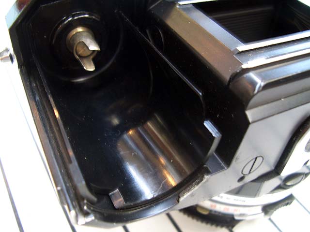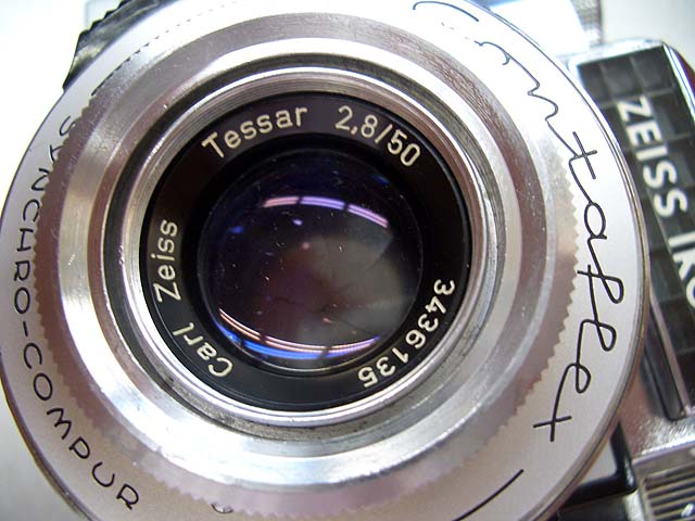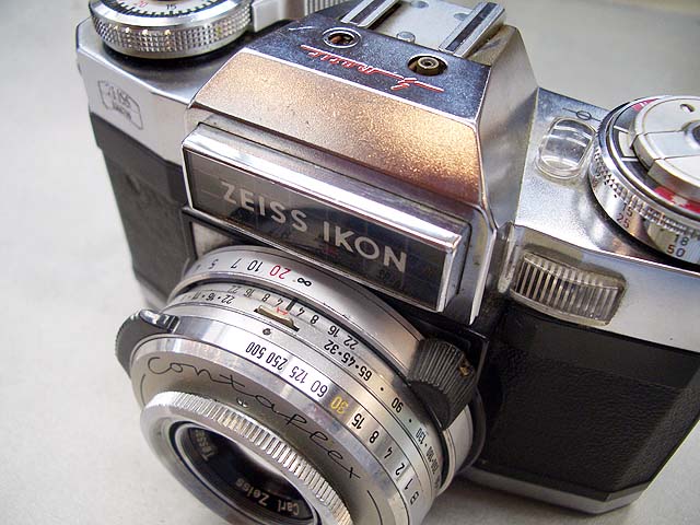 この商品をセカイモンのサイトを通じて落札したのが今月8日。 17日の記事でもお伝えしましたが、その時点での商品の動きはない状態でした。 そのすぐ後にセカイモンが商品を受け取って、日本へ発送したと言う連絡がありました。 それで、昨日やっと届きましたので、届くまでに14日、つまり2週間かかったことになります。 これは遅いんでしょうか速いんでしょうか。 今の日本の物流事情からすると、比べようもなく遅いですけどね。 ただし、その輸送時間のほとんどは米国内での時間です。セカイモンのL.A物流センターが商品を受け取ってから私が受け取るまで2-3日しか経ってませんからね。 でもまぁ、遅いのは遅いなりに、楽しみな期間が長くていいですけど。 フィルムを現像に出してプリントが上がって来るのを待つようなもんでしょうか。 それで、やっと届いた荷物を開けてみました。 すると、えらく梱包が厳重です。何重にも緩衝材でくるんであって、なかなか物が出てきません。 なんか、キャベツをむいているような感じです。 で、やっと出てきたのは、 読みは当たりました。 「Contaflex Super B」です。「S」じゃなくて良かった。 では早速各部を見てみましょう。 まず第一印象。 重い。 金属の塊といった感じです。 大きさは、思っていたより若干大きいかなと言う印象です。 外観は、全体的には隅にホコリが溜まっていたり、小キズが結構あったりしています。 が、錆びたり腐ったりしたところはなさそうです。 カメラの底面には、 前のオーナーのものと思われる名前が貼ってありました。 「H.J.SCHUTT」さん? そう言えば思い出しました。私が小さい頃には、日本でもこれと同じようにカメラに名前を貼っている人も結構いたような気がします。 それとか、ケースの内側に名前と住所と購入日が書かれてあったりとか。 それだけカメラは高級で大切なものだったんですね。 裏ブタを開けてみると、 こんな感じ。 パトローネ側に、 なんかプラスチックのガイドのようなアダプターのようなのが組み付けてあります。 最初私は、ラピッドフィルム用のアダプターかと思っていたんですが、どうやらこのままで正常のようです。 135のパトローネがピッタリはまります。 これは多分、オプションのフィルム交換マガジンを取り付けるときに外すんじゃないでしょうか。 で、反対のフィルム巻上げ側は、 ちゃんとスプールが付いている、と思いきや、パトローネの芯で代用してるだけじゃないですか。 フィルムの先端を挟み込むところがないよ。 まぁこれは後で何とかしましょう。 それから、レンズには カビらしいものもなく、ファインダーも汚くは有りません。 マットに少しゴミはありますが、結構見やすいです。 しかしシャッターも絞りも粘っているようで、スローは遅くなってますし、絞込みが間に合ってないような感じです。 高速側のシャッターはちゃんと切れてますね。 シャッターを切った時の音は、フジカST-Fのようなプラスチッキーな音ではもちろんなく、フォーカルプレーンのような音でもなく、やっぱりレンズシャッターの音ですね一連の特殊な動作のために、音も独特です。 チシャッという感じです。 なかなかいい音ですが、分解清掃したらもっと静かになるかも。 セレンの露出計は死んではないようです。明るさによって針は動いています。 でもオートの機構がちゃんと働いてるようでもないです。 このカメラの最大の特徴は、何と言ってもシャッターセットから撮影までの機構です。 レンズシャッター一眼レフですので、とっても複雑です。 まず巻き上げると、シャッターセットが行われると同時に、ミラーが降りてきてシャッターと絞りが全開になり、フレーミングとピンと調整と、露出調整ができるようになります。 次にシャッターを切ると、シャッターが閉まって、絞りが設定値になって、ミラーが跳ね上がり、続いてシャッターが露光時間だけ開いて閉じる。 なんとも無駄というか複雑というかバカバカしいというか。変態心をくすぐるギミックです。 実際に触ってみると、巻き上げた時や、シャッターを切った時の感触や音がなんとも言えません。 カメラは撮影が目的で、操作そのものは目的ではないはずですが、このカメラは操作することを目的に撮影したくなるような感じがします。 大体ファーストインプレッションはこんな感じですね。 色々と直すところがありますので、これからいじっていくのが楽しみです。 いやいやでも待って下さいよ。フジカST-Fの光線漏れがまだ直ってませんので、こっちをちゃんと直してからにしないと。 それまでちょっとお預けで、空シャッターだけ楽しんどきますか。