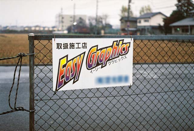 持って行ったデジカメは、SIGMA DP1です。 フィルムカメラの方が50mmなんで、広角が使えるカメラも用意しとこうと思ってのことです。 一応紅葉も撮りました。 広角ならではの広がり感です。 国分寺からこうもり塚古墳に行く途中に道案内があります。 こども店長はこういうのが好きです。 こうもり塚古墳まで行くと、周りには菜の花畑があります。 近所の幼稚園生が植えたらしいです。 時期になるときれいに咲きそうですね。また来たくなります。 それと、松ぼっくりやドングリもいっぱい落ちています。 いっぱい集めて、母さんとクリスマスリースを作るんだって。 吉備津神社では、おみくじを引きました。 出てきた数字と同じ番号の引き出しに入っているおみくじを一枚取ります。 「やったー!大吉!」と、こども店長は喜んでいました。が、後で他の引き出しも開けてみて、「全部大吉じゃんか」と言っていました。 まぁそれもいんじゃないの。みんなラッキーになれるんだから。 吉備津彦神社の入り口にこんな看板がありました。 なんで「わんちゃん」なんでしょうか。 後から他の人が書き加えたのでしょうか。 いやぁ、この看板の前に来たタイミングでおあつらえ向きのペンを持ってるという状況は、ちょっと考えにくいです。 ではなぜ「わんちゃん」と、書いてしまったのでしょうか。 「いぬ」と読んではいけない何かがあるんでしょうか。 神社の人に聞いてみればよかった。 てな感じで、楽しい吉備路でした。 それからそれから、帰り道なんですが、 たまたま目に入って、ちょっとクスみました。 「グラヒックス」って。 まぁ、「イングリッシュ」を「イギリス」と言ってしまうようなもんではありますが。 いや待てよ。スペイン語だったら「エングレス」だから結構近いね。ポルトガル語だったらどう言うんでしょう。 あぁ、話がずれてきた。