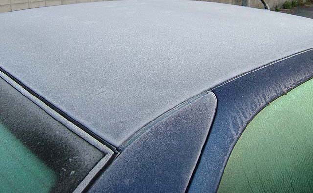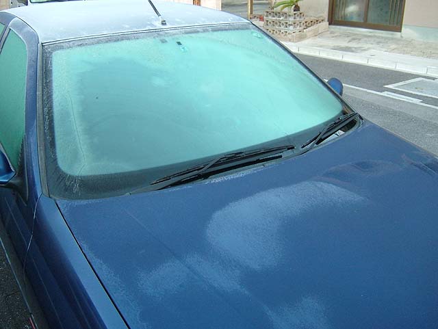 今朝は寒いなぁと思って駐車場に行ってみると、