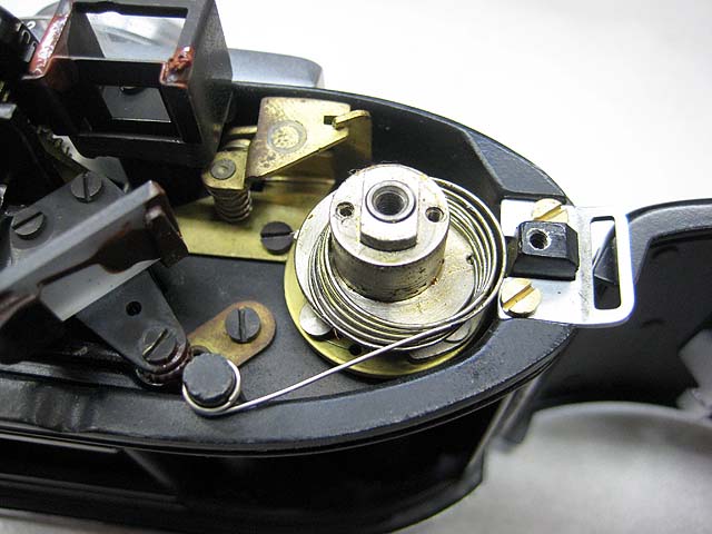 14日の記事で紹介しました、ミノルタAですが、分解していきましょう。 いつも通り巻上げから外しましょうか。 このカメラの場合は正ネジです。 逆ネジじゃありません。