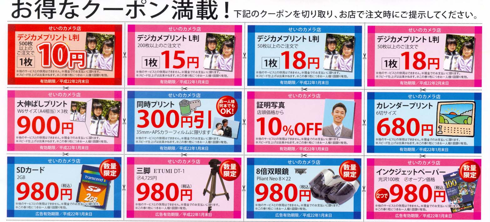 今回もデジカメプリントで、10円クーポンがあります。