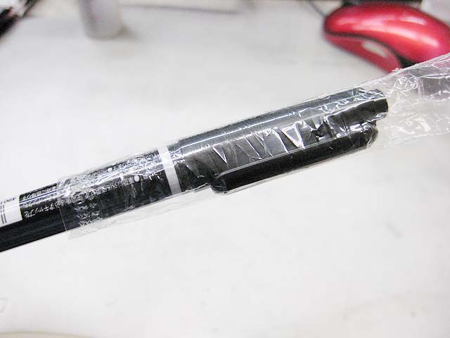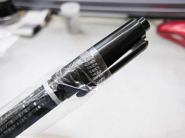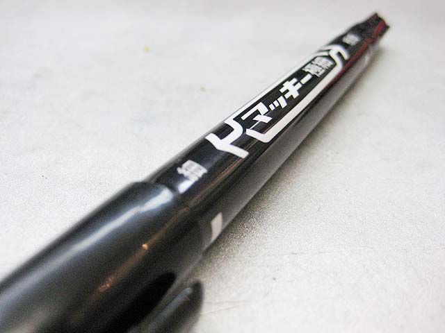 マッキー君はばら売りの場合、一個ずつビニール袋に入ってるんですね。 スーパーとかの量販店でつるしで売っているものではなく、文房具屋ではこういう感じで売ってると思うんですが。 その、新しく買って来たマッキー君を袋から出そうそしたら、 出ません。 なにそれ。 下の方は狭いの? じゃぁしょうがない。上から出しますか。 まぁ当たり前ですが、出ますね。 何でこうなってるの? 上下同じ幅の方が袋を作りやすいと思うんですが、 ではそれぞれの幅を測ってみましょう。 幅の広い上側では、大体24mm。 では、下は? 19mm程でしょうか。 実に5mmも違います。周囲で比べると10mmの差です。 それにしても何でこんなことになってるんでしょうか。 互い違いの向きでシート状に袋を作って、マッキーも互い違いに口の大きい方から袋に入れているんでしょうか。 袋を作る材料はおそらく等幅のシートでしょうから、そこからテーパーの付いた袋を作るとなると、互い違いに作るしかないと思うんですが。 その5mmをケチってまで原価を抑えようという魂胆でしょうか。 でもそうなると袋にマッキーを入れる工程が複雑になりますよね。 その方がコスト高にならないのでしょうか? うーん。 よく分かりません。 ゼブラの方教えて下さい。