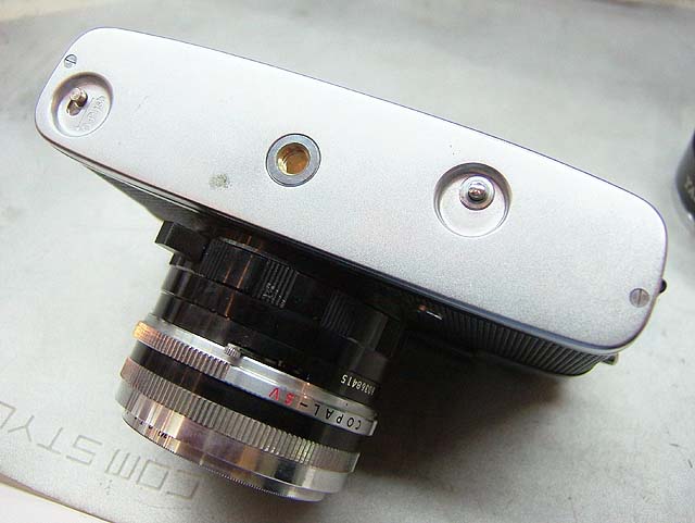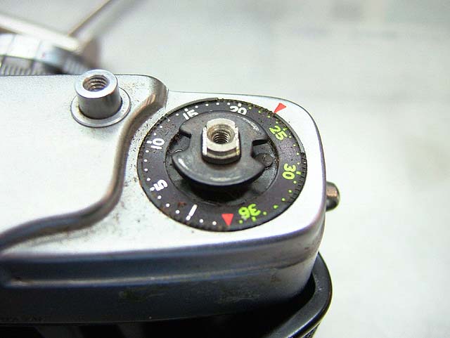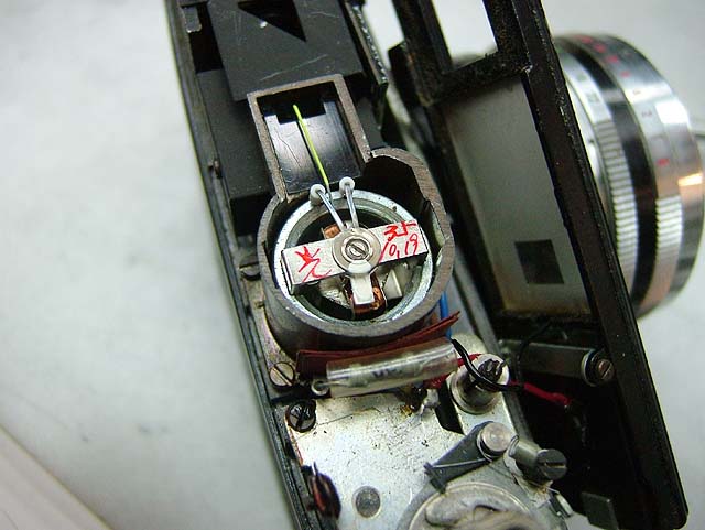 セレンの露出計が内蔵されていて、シャッターと絞りに連動し、それが適正かどうかファインダー内で確認できる。