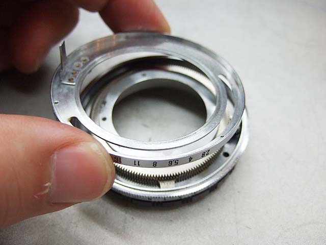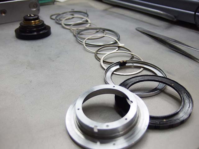 こりゃぁ前にバラした人がちゃんと組まずに、リングの類を適当に突っ込んでレンズ前玉で締め込んでいただけだったんですね。