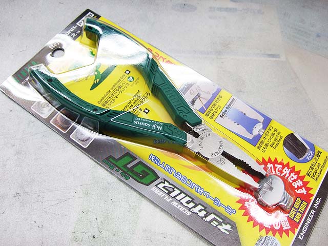 錆びたりして硬くなったネジをドライバーで一所懸命外そうとしていたら、最後にはとうとう頭がなめてしまったと言うことがありますよね。 そうなる原因は別として、なめてしまったネジをどうしたものかと考えてしまいます。 今回の工具はそんなネジを外すための工具なんです。 その名はネジザウルス。 株式会社エンジニアと言うとってもベタな名前の会社の製品です。 今回購入したのはネジザウルス4種類の中から頭の薄いネジに対応していると言う「ネジザウルスGT」です。 頭が薄いといっても毛が無いわけではありません。 トラス頭とかの頭の高さが低いものでも結構いけるということです。 パッケージから出すとこんな感じ、 なんかカッコいいですね。 で、この工具がどうして固着したネジを外せるのかと言うと。 口先に縦溝が付いているからなんですね。 だからここにネジの頭をしっかりくわえ込んで回せると言うわけです。 こんな感じに。 使ってみると結構いけます。 サビサビのネジはまだやってみていませんが、感触としてはどんなに固まったネジでも外せそうな気がするぐらい、しっかりしたくわえ込み感と握りやすさがあります。 ドライバーで動かないカメラのネジを外すとか、家の水周りの錆びたネジを外すとかにはいいと思います。 今回の「ネジザウルスGT」では大きいネジには対応していませんので、古い車の修理には向いていませんが、同じネジザウルスで、M6まで対応した「ネジザウルスXP」と言うのもありますので、これなら車もいけそうですね。 もっとも、M6より大きいネジでは、元々ペンチの類では回せないぐらいのトルクで締まってますからね。 でもこの工具、普通にペンチとしても使えますし、一つ持っていて損は無いと思います。
