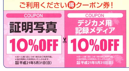 上記画像をクリックすると、別ページにクーポン券だけ表示されますので、プリントアウトするか、このページをそのままプリントアウトしてご持参下さい。、各10%OFF!