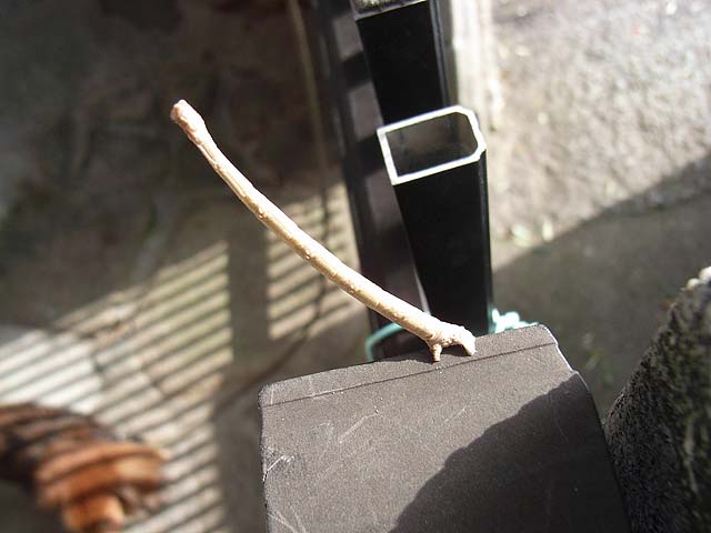 それで、ちょっと突っついたりしてみたんですが、辛抱強く小枝のフリを続けて、正体を明かそうとしませんね。