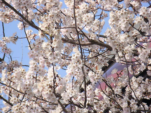 そのシャクトリムシから見上げると、青空をバックに桜を見ることができました。