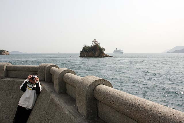 その飛鳥IIがどうしたのかと言いますと、因島大橋の下を通ると言うのでうちの子と一緒に見に行って来たんです。