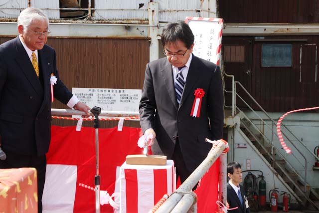 支綱切断の斧には、右側に4本、左側に3本の溝が彫ってあります。