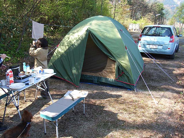 で、昨日の記事の最後で、「火がつかない」と書きましたが、実は火がつかなかったのです。 なんのこっちゃと言う感じですが、今回持って来たうちで長期にわたりストックしていた備長炭が、こともあろうか火がつかないんです。 思いっきり着火させれば、いこりはするものの、継続して自己燃焼してくれません。 あ、「いこる」って方言? 普通なんていうの?炭が赤くなった状態。 やっぱり長期ストックが災いしましたか。 じゃぁ仕方がありません。 持ってきたカセットコンロで調理して、その晩は何とか飯にありつけました。 がしかし。 次の朝、朝飯を作ろうとカセットコンロを用意して、火をつけようとしたその瞬間。 つまみが無いじゃないですか。 なんと言うことでしょう。頼みの綱のカセットコンロが使えないじゃないですか。 どうする。 ちょっと考えましたが、持って来たサバイバルナイフのハサミ部分で何とか軸は回せました。 でも点火のところまで回すほどの力は出せません。 まぁそこはチャッカマンの出番で事なきを得ました。 でもつまみ、どこに行ったんでしょうか。 とりあえず火がつけば一安心です。 この日の朝のメニューはイングリッシュマフィンです。 ボクは早速写真を撮っています。 今回ボクが使っているのは、以前にも紹介しましたフジカ35-SEです。 私の方は今回はフィルムでなく、SIGMA DP1と、リコーR5です。 でもやっぱり一眼レフを持って来れば良かったかな。 テントにも朝日の影が写ってきれいですね。 で、炭が使えなくてはキャンプの魅力も半減します。 なので、炭の買出しに出かけましょう。 幸いにも車で15分程度のところにホームセンターがありました。 もちろんキャンプ場にお願いすれば用意して頂けるのでしょうが、今更言うのもなんですので。 買ってきた炭で晩飯用に火をおこすと、何の苦も無く火がつきました。 やっぱ炭のせいか。 今度は暗くならないうちにさっさと晩飯作りに取り掛かりましょう。 メニューは、キャンプでおなじみカレーです。 ダッチオーブンで作れば、なんかおいしくなりそうな感じがします。 ついでに、持参のバーベキューコンロで、 手羽とかも焼きましょう。 火が欲しいならいくらでもつけてあげます。 でもきっとこの大量のカレーは一晩では食べつくせないでしょうから、明日の朝は二日目カレーですね。 あ、そうそう。 ところでいよいよ壱万アクセスが迫ってまいりました。 Xデイは5月5日こどもの日か!
