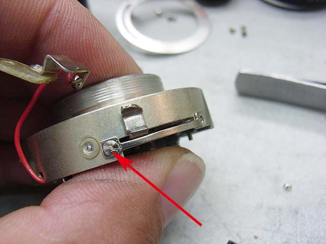 前回の記事までで、レンズの中に泥が入っている事が発覚したフジカコンパクト35です。 なので今回は、そのレンズの分解の解説をしましょうか。 まず、レンズユニットをボディーから切り離すには、フィルム室から見てここのカニ目を外します。