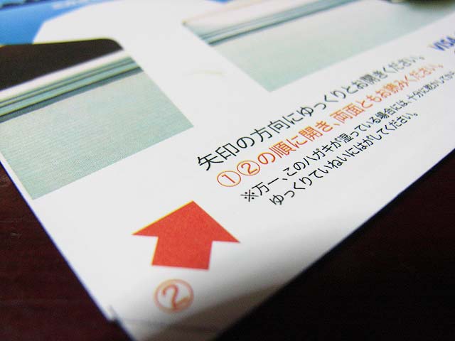 そういうのって二つ折りや三つ折になっていて、角からめくるようになっているのがよく有りますよね。