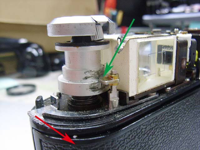 このカメラの距離計は、ほんの少しずれていましたのでここで、調整して無限遠で二重像のずれは直りました。