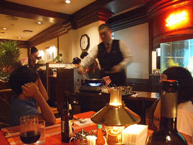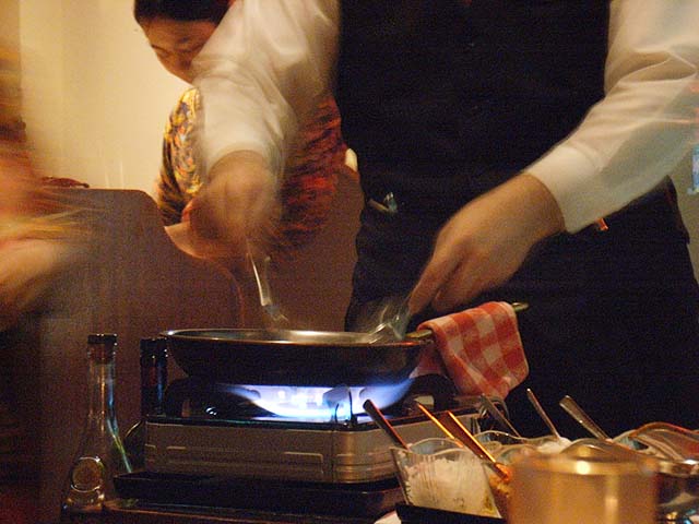 メニューの中にはテーブルの横で調理してくれるものもあります。