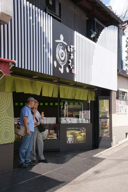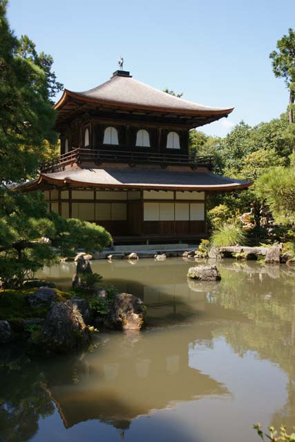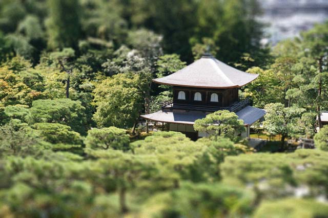 私の用事は無くなります。 仕方が無いので、座禅が行われている法堂の外観でも撮ってみますか。 ちょうど太陽が沈んだ後で、まだほんのり空が見えます。 月明かりと法堂の窓の灯りがいい感じです。 次の日は京都市内で班行動です。 まずは全員で能舞台に行きます。 私は毎年この能舞台に来ています。 いつ来ても凛とした感じがあるのが好きです。 そして班行動の最後は、全員清水に集合します。 と、ここで、この写真を見てください。 このお店は先週の修学旅行でも紹介させていただきましたお店です。 1週間で看板が変わっていました。 ビックリです。 個人的には前の方が良かったかな。 それから、今回初めて銀閣に行きました。 私が同行した班が行くことになっていましたので。 そしたらここ、なかなかいいですね。 金閣みたいにハデハデしくないし、庭もとてもきれいだし。 緑もきれいです。 光に照らされたカエデの葉が光って見えます。 庭がきれいだと写真を撮るのも楽しくなります。 それから、フォトショップでちょっと遊んでみました。 銀閣のミニチュア風です。 修学旅行も仕事で行っていますので、なかなか思うときに思うような写真を撮ることができませんが、来年も更に楽しい写真を撮ってみたいものです。
