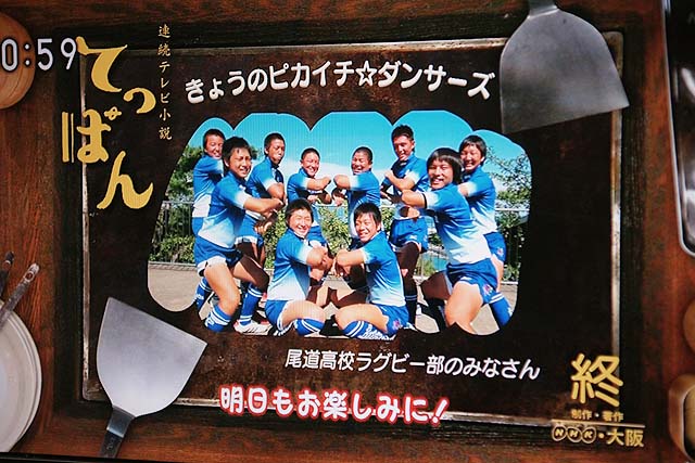minatoさん、ありがとうございます。 「てっぱん」面白いですね。 朝3回見てます。BSハイビジョンとBS2と地上波と。 可能な時は昼も。 今日の放送分の「ピカイチダンサーズ」はJCメンバーでしたね。 昨日の放送では「からさわ」の店の前がちょびっと出てましたね。 兼吉の渡船は毎日のように出てますが、「ますやみそ」の看板は既に有りません。 ロケ地マップでも作ってみようかな。