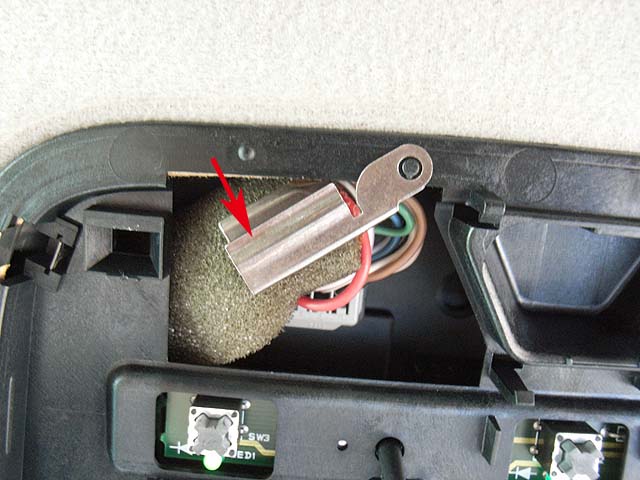 そのプラスチックのピン2本を矢印のように広げますと、カバーがポッコリ外れます。