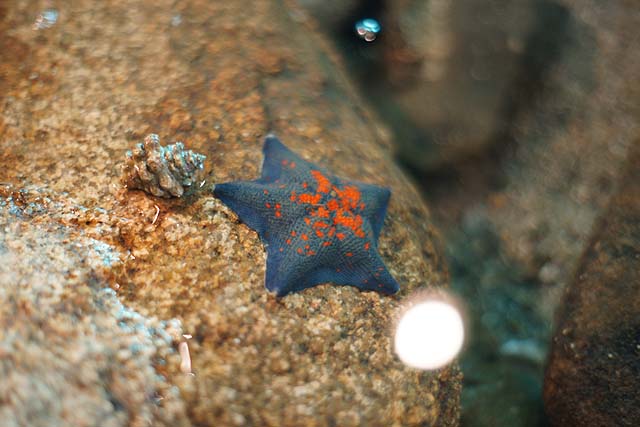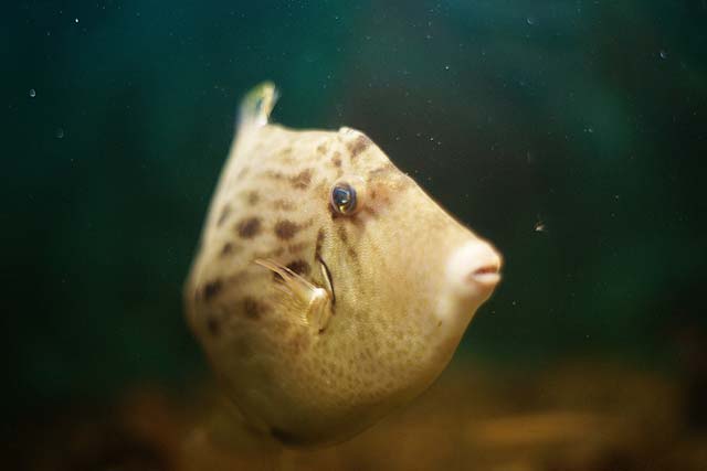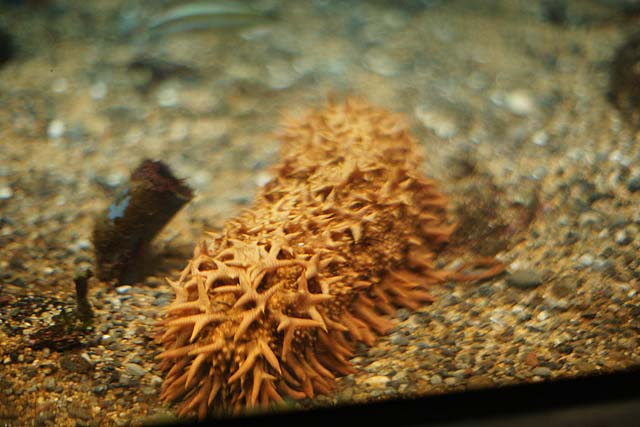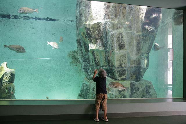 もちろんこれは商業的な水族館と言うわけではありません。 ここは何かというと、福山大学の施設なんです。 「福山大学マリンバイオセンター」 福山大学には生命工学部というのがあるらしく、そこの附属施設なんだそうです。 おそらく大学の実験や観察のために採集したりした海洋生物の一部を、せっかくだから一般にも見せてあげましょうというものではないかと思います。 琉球大学にも瀬底に臨海実験所というのがありますが、そこには水族館などありません。 実験用の水槽があるだけですから、例え一般に開放したとしても全く魅力はないと思います。 それにすぐ近くに美ら海水族館がありますし。 話は戻って、水族館ですが、ここには4年ほど前に行ったことがあります。 これは当時の写真。 ちの子もまだ幼稚園でした。 その時の印象は、大学の施設のオマケと言う感じでした。 が、今回行ってみると、何だかきれいです。 こんなにきれいだったかなと思って4年前の写真をよく見てみても、やっぱり大水槽以外は熱帯魚用の水槽と言った感じでした。 そこで大学のホームページを見てみると、どうやら去年リニューアルしたらしい。 だからきれいなんですね。 前の印象があったので今回はあまり行く気がしなかったんですが、なかなかいいですよ。 展示は多くはありませんが、ちょっと寄ってみるにはお勧めです。 では今回被写体になってくれた魚たちを見ていきましょう。 入ってすぐのところに「タッチングプール」があります。 ボクはいつものようにナマコにビビッています。 入り口から右手の大水槽にはおいしそうな鯛がいます。 ここに入っていると養殖物と言うことになってしまうんでしょうか。 大水槽からタッチングプールを挟んで向い側には、熱帯性の海洋生物の展示があります。 オニヒトデもいます。 ここは毒系の水槽でしょうか。 少し奥に進んだ正面には、これまたおいしそうなギザミや、 アナゴがいます。 隣には軟骨魚類もいます。 彼は一日中こうやってるんでしょうか。 水槽に手を近づけると、キョロッと目をこっちに向けました。 これはサメの卵ですね。 もう孵化してしまったのか、中の赤ちゃんは確認できませんでした。 進んでいきますと淡水系の生物の水槽もありました。 この方はまだ実験中なんでしょうか。 何か貼ってありますね。 すごいナマコですね。 このナマコがタッチングプールにいたとしても、誰も触らないでしょうね。 地元の生物と、熱帯性の生物と両方見られて楽しいです。 水槽の下の方には、水槽内の魚の説明があります。 大学のホームページによると、「アクアリウム学科コース」と言うのがあるようです。 水族館の勉強してるんですか。だから展示がきれいで充実しているんですね。 彼らは何でずっとこっちを見てるんでしょうか。 今回の私の一番お気に入りショットです。 何か、もの言いたげなところがいい感じです。 撮影機材はα900 + 50mm, F1.7でした。 因島ドライブ、結構楽しめました。