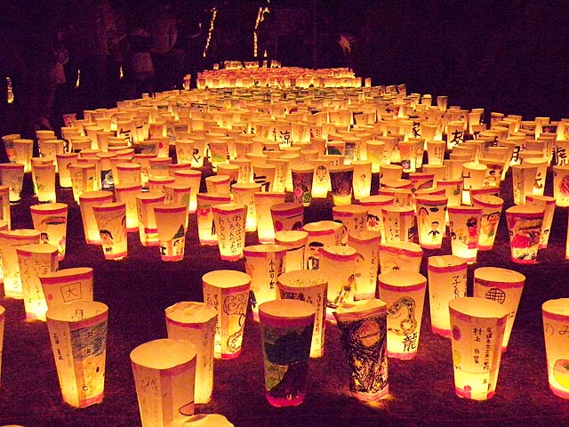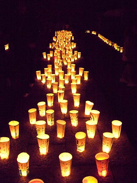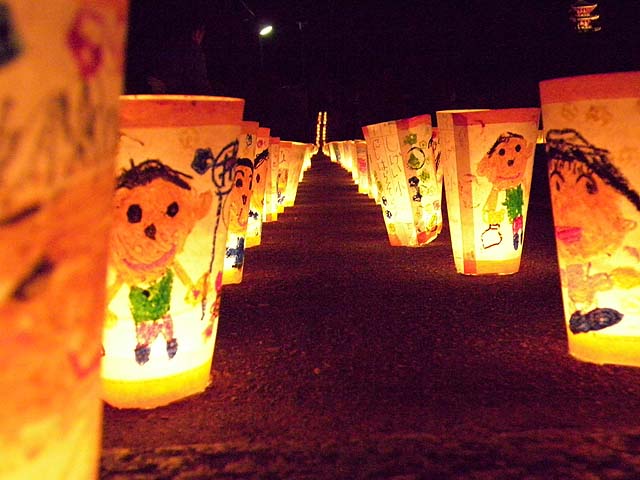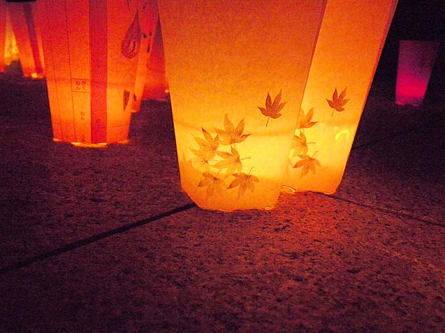 デジカメのように高感度設定とか出来ませんので、ASA400のフィルムを使ってのストロボ撮影です。 使ったストロボはオートストロボですので、露出は一定にしておけばいいですから比較的楽に写せますね。 よくピントを合わせていますね。 当然オートフォーカスではありません。 二重像合致式の連動距離計ですので暗い環境では合わせにくいですが、よく合わせています。 鯛は結構速く動き回っていますが、ちゃんと追いついてますね。 ピントもばっちりです。 水槽の正面から写すとフラッシュが反射するからちょっと斜めにするといいと教えてあげたら、ちゃんと守って写しています。 このコマの光の写り込みは、柱に反射した光が入ったようです。 最短撮影距離も1m程なので、あまり近付いて撮影できませんが、制約条件も気にせず楽しんでるようです。 続いては昨日の灯りまつりです。 なかなかいい被写体を見つけましたね。 使ったカメラはニコンCOOLPIX P6000です。 Aモードにして絞りは開放、感度セットは高感度オートに設定して撮影です。 Pモードでも良かったかも。 尾高のマークがあると言って一所懸命写してました。 フレームから外れた感じがなかなかグーですね。 これはボクの一番のお気に入りショットなんだそうです。 二列に並んだボンボリが、手前からずっと奥まで真っ直ぐ連なった感じがいいですね。そしてボンボリの絵柄もまたいい感じで、とてもいい作品になっています。 撮像素子が小さいこともあって、被写界深度は結構広いですね。 あまりボケないことで奥までのスケール感が良く表現されていると思います。 沢山並んだボンボリがうまく撮影できています。 並んでいるボンボリがお寺の塔のように見えるって言ってました。 そんな感じが表現できましたね。 こんなのを見つけて面白がって撮ってました。 写真は楽しく撮るのが一番ですね。 私も子どもと一緒に写真を撮るのはとっても楽しいです。