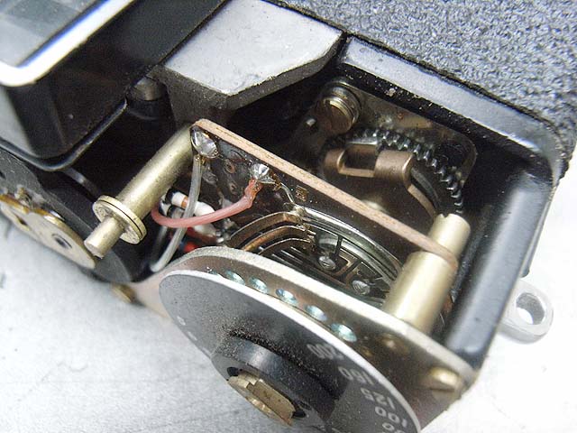 感度設定ダイヤルなどが糸やリンケージで物理的にメーターと連動しているカメラもよくありますが、フジのこのあたりのカメラは電気的に連動しています。