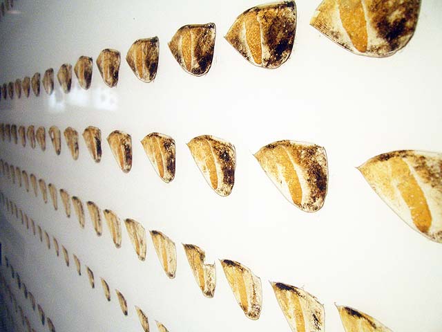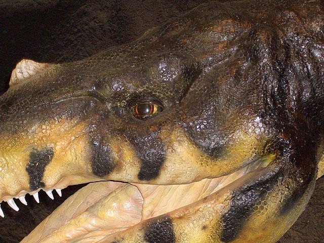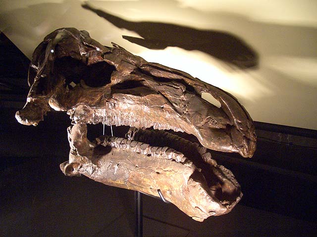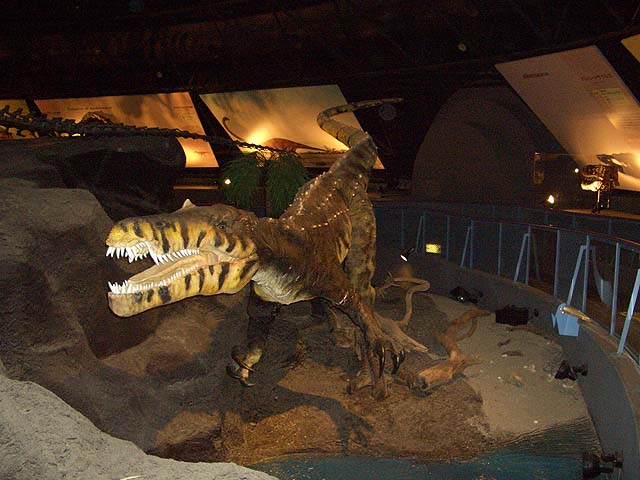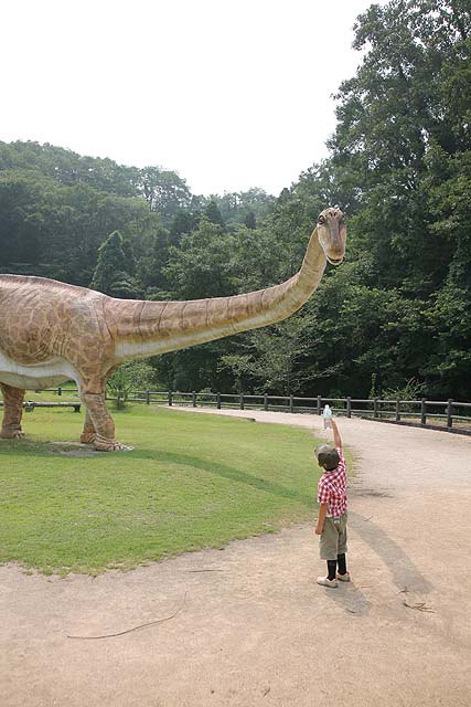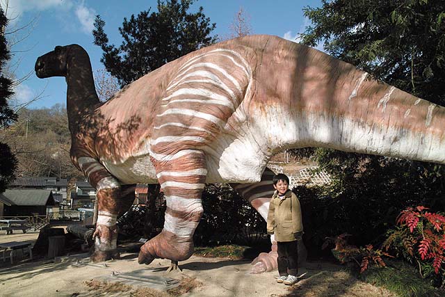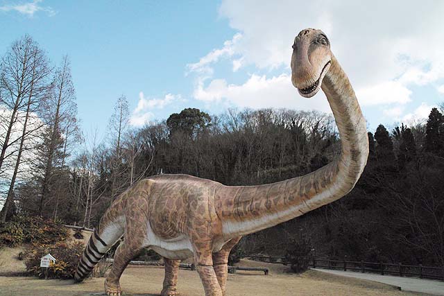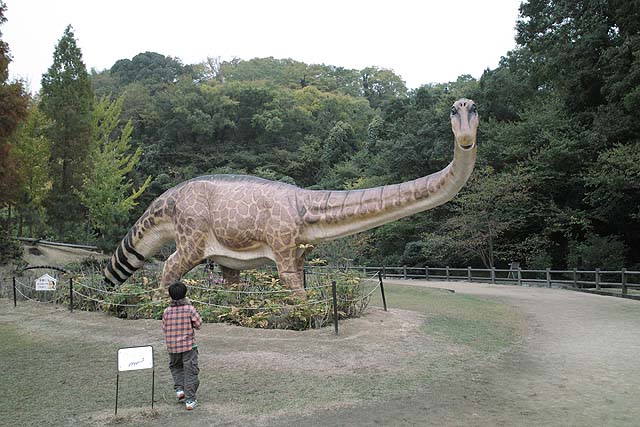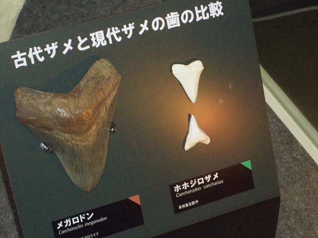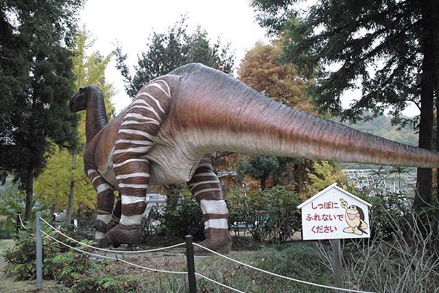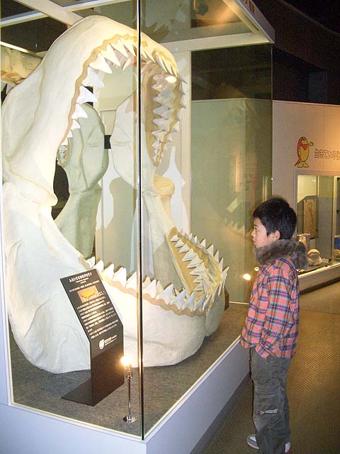 入り口近くにはオウムガイがいました。 オウムガイもカブトガニと同じく、古くからほとんど姿を変えずにいる、生きた化石と呼ばれる生物ですね。 属名はノーチラスと言うのだそうです。 最初の写真も新しい展示の一つで、メガロドンと言う古代の巨大鮫のあごの骨の展示です。 美ら海水族館にも同じようは展示がありますね。 でも見るたびに、本当にこんなのがいたのかなと思ってしまいます。 こちらは前からある展示で、カブトガニのエラを1匹分一枚一枚並べて展示したものです。 ちなみのここに写っているものは一部です。 すごい数があります。 海水から酸素を取り出す工夫と言うのはすごいもんだと感心します。 そしてこれが新しい展示。 恐竜関係の展示が以前より充実した感じがあります。 物によっては使いまわしの部分もありますが、展示の仕方が変更され、見やすくなっています。 カブトガニが生きてきたそれぞれの時代の生物を展示していると言うわけです。 それから、以前からある展示で、「バリオニクス」と言う恐竜の展示があるんですが、 この展示って、動くんですね。 今まで動いているのを見たことがなかったんですが、当分の間壊れたまま修理されなかったのでしょうか。 しかもその動きがリアルと言いますか、不必要なこだわりがあるといいますか。 よく見てみると、 まばたきします。 皆さんもぜひ行ってみて下さい。 それと、外には恐竜の原寸大の模型も置いてあるんですが、以前は触れたりもしたのですが、今では柵で囲まれてしまって、近付くことさえできなくなってしまいました。 ちなみにこちらの写真は、 2007年7月。 2009年1月の写真。 で、こちらが現在の写真です。 おまけでこちらも、 2009年1月と、 今の写真です。 よく見ると塗りなおして有りますね。 尻尾にぶら下がって折ってしまうようなやつがいたんでしょうか。